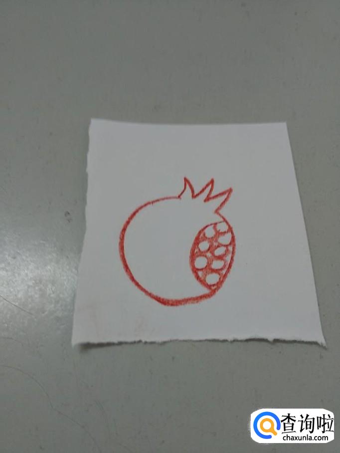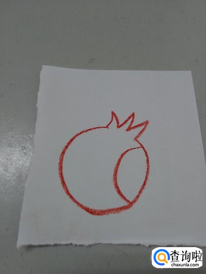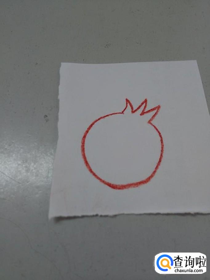 先用红色彩笔在纸上画三条相连的折线,表示石榴顶部。