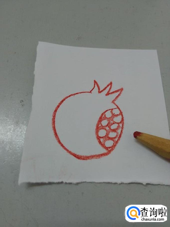 在弧线的右侧,画一些小的圆形,表示里面的石榴籽,简易石榴就画完了。