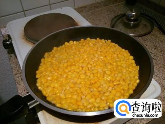 购买一些嫩玉米粒,将玉米粒放到锅里煮,煮到熟后将其捞出。