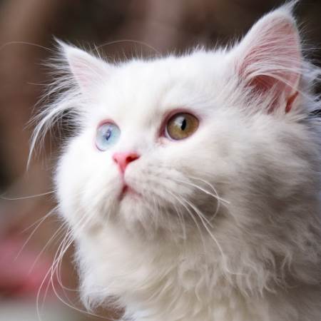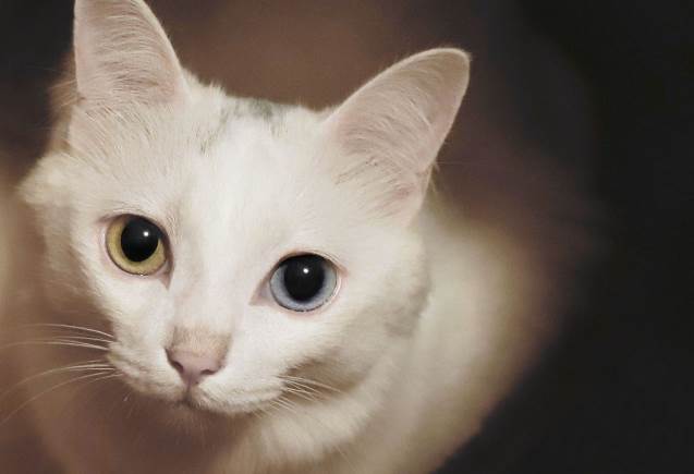 在双色眼的白猫中,往往猫咪蓝色眼睛同侧的耳朵是聋的。不过猫咪的蓝眼睛并不都是白色基因造成的,也可能是由于猫咪携带的重点色基因造成的,这种情况下猫咪蓝色眼睛一侧的耳朵就不是聋的。
