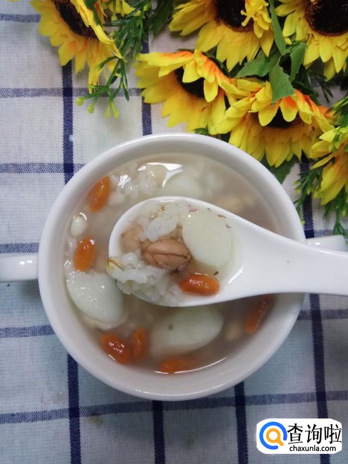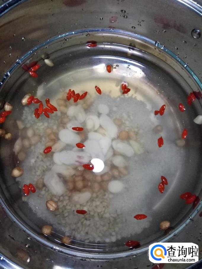 山药适量,花生适量,枸杞子适量,大米适量,薏米适量,冰糖适量。