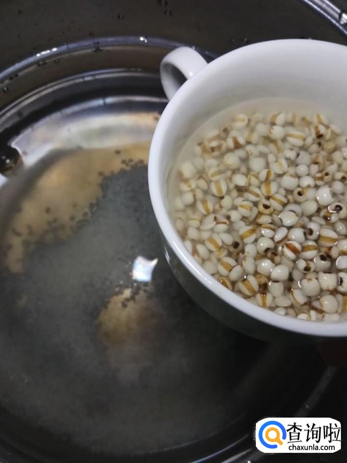 准备适量花生米和薏米提前泡四个小时,再准备适量大米提前泡半个小时,备用。