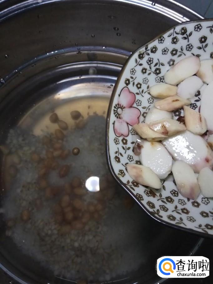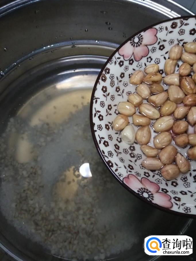 锅中放入适量清水,将泡好的大米,薏米和花生米都放入锅中。