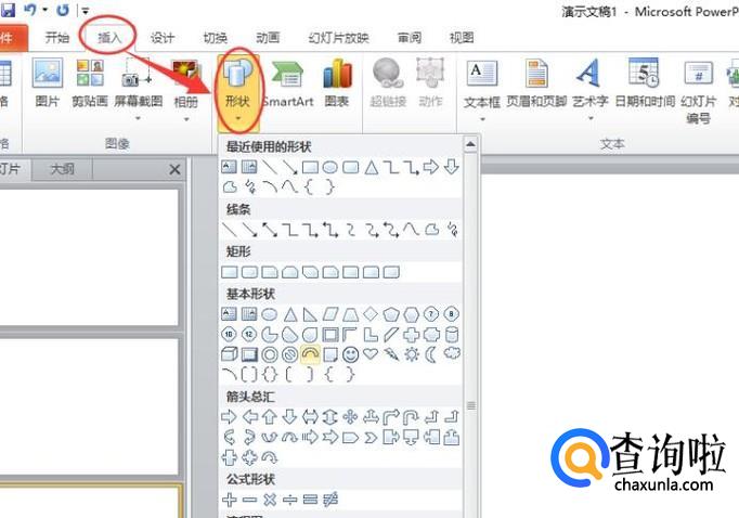 点击“插入”,然后选择“形状”,如图所示。