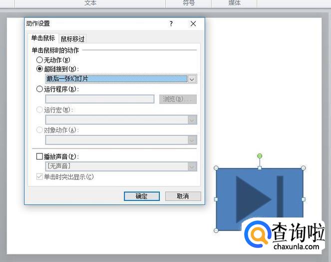 设置超链接到为“幻灯片”,如图所示。