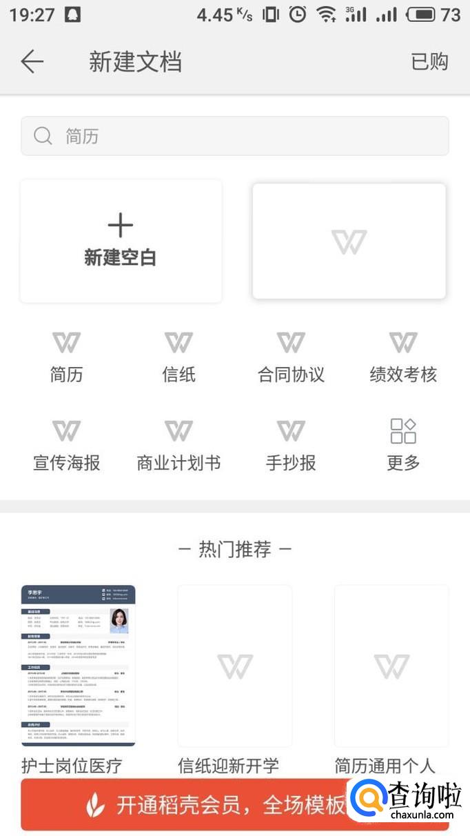 进入新建文档界面,你可以搜索热门模板来进行创建使用,也可以直接“新建空白”