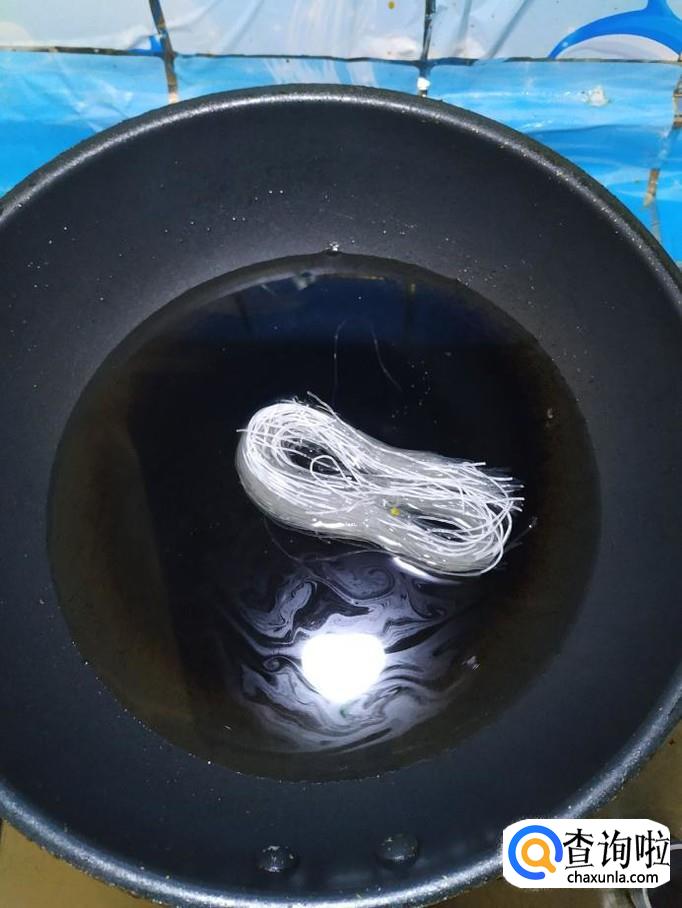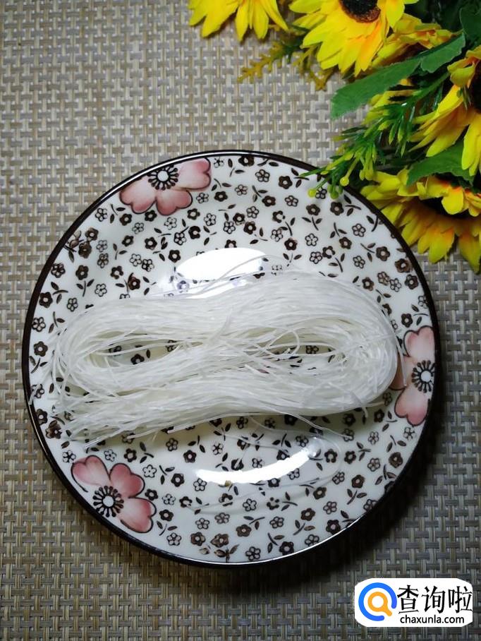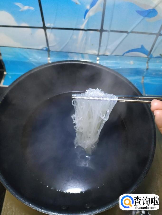 准备适量粉丝,锅中烧开水,水开后,将粉丝放入锅中煮5到6分钟,捞出过凉水,控干水分备用。