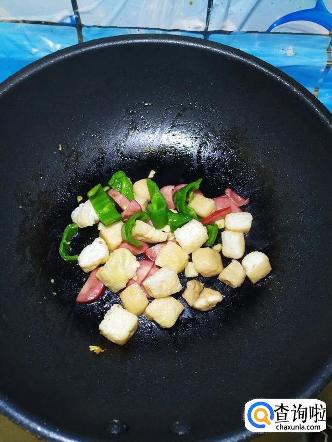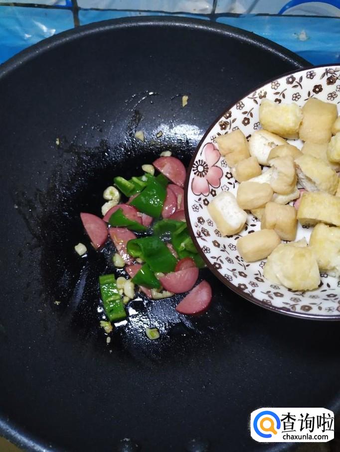 将油豆腐倒入锅中,翻炒均匀。