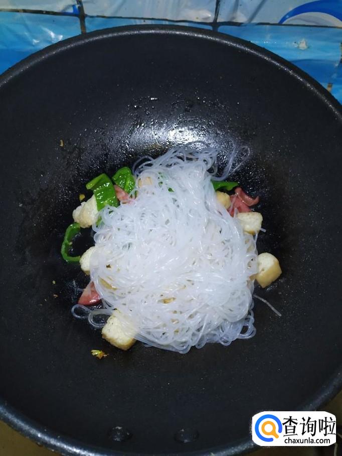 将焯好水的粉丝倒入锅中,搅拌一下。