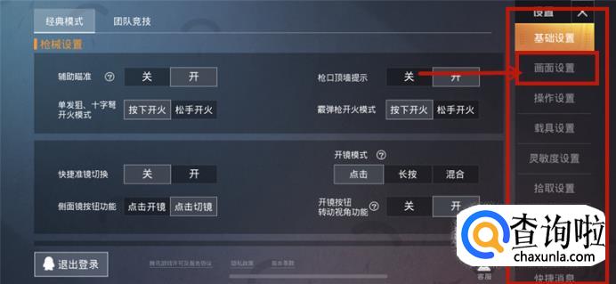 进入设置以后我们可以看到右侧有很多选项,找到“画面设置”,点击进入。