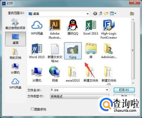 打开ps之后双击空白区域在弹出的打开对话框内找到我们的图片素材,如图所示: