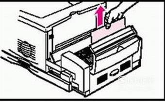 出现卡纸这样的故障时,操作面板上指示灯会闪动,并向主机发出报警信号,甚至还会提示你如何操作。排除方法十分简单,需要打开机盖,取下被卡的纸。 但要注意,一定是按进纸方向取纸,不能反方向转动,避免将纸张撕裂。