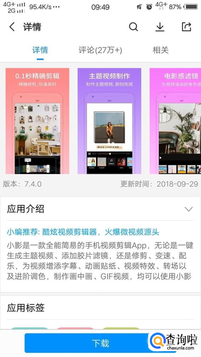 然后,是小影,它是一款全能简易的视频编辑app,它可以一键生成主题视频或者是添加滤镜。