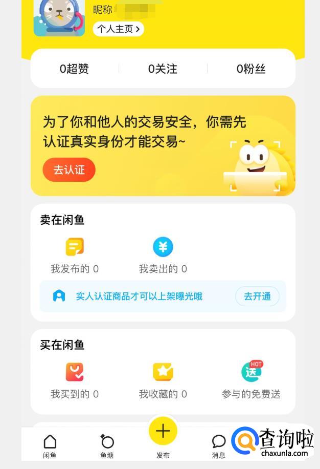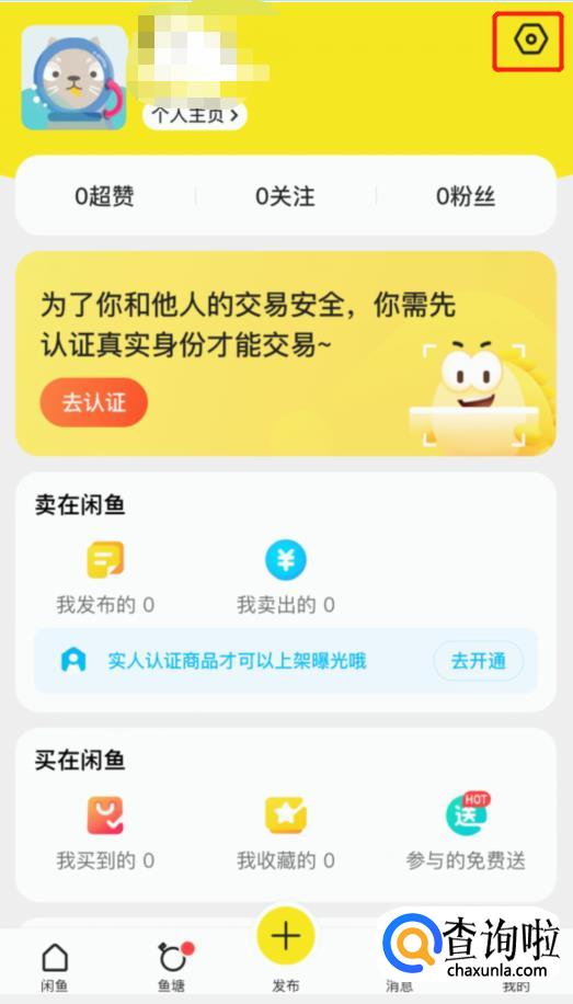 首先打开闲鱼app,在右下角点击我的进入个人主页。