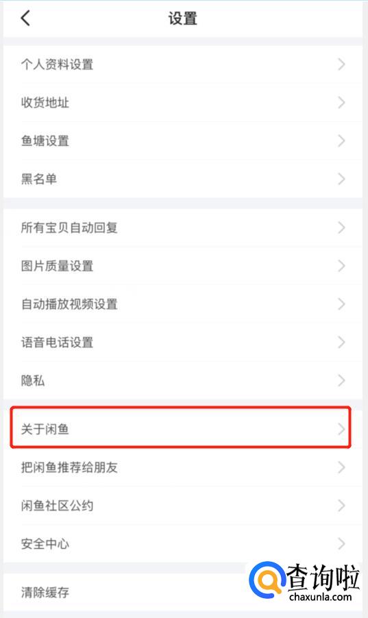 在设置里面找到关于闲鱼的选项。