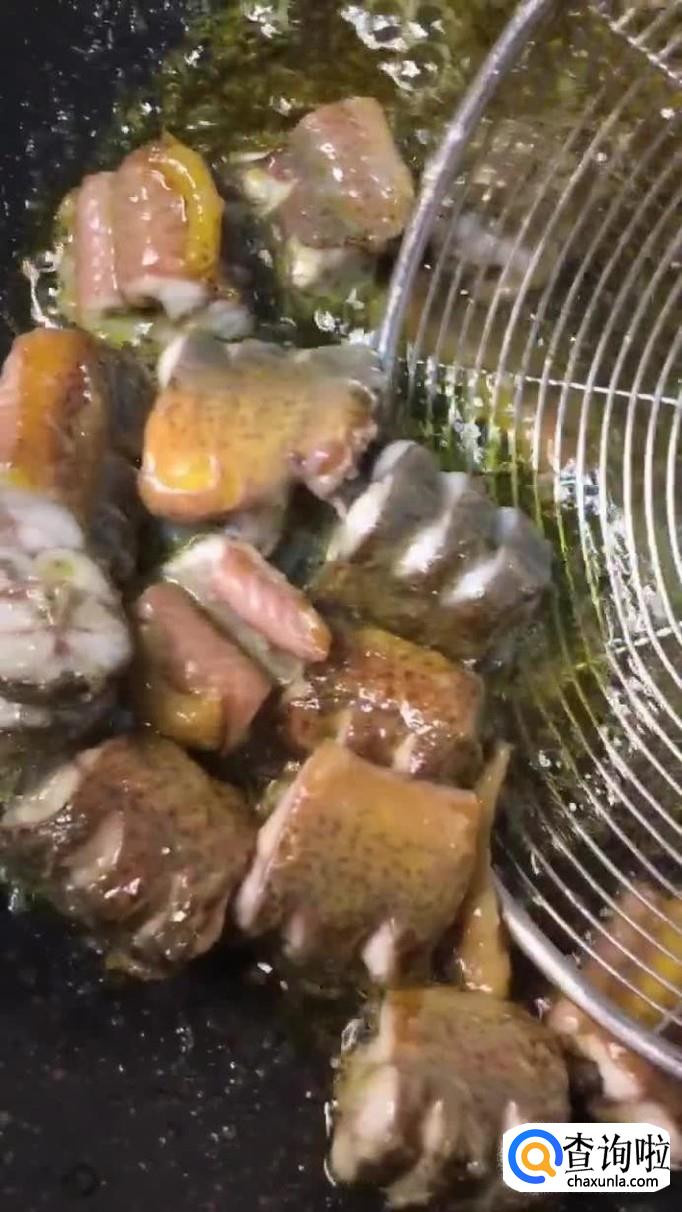 然后锅中放入适量的食用油,待油冒烟,倒入鳝鱼煎至两面金黄,捞出控油备用,如下图所示。