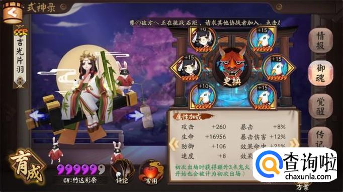 御魂副本中辉夜姬很实用,尤其是八九十层的御魂副本开局辉夜姬就为全队增加防御,这样就不容易出现开局就被NPC秒的局面,因此御魂副本必须带辉夜姬。