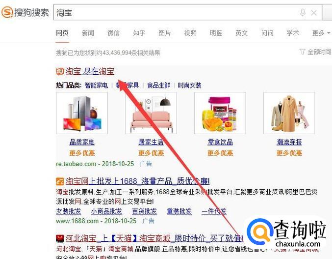 进入之后,搜索“淘宝”,点击并进入,如图所示。