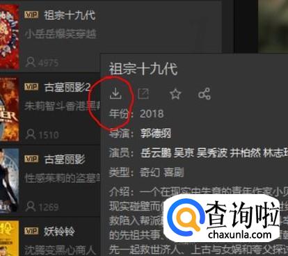 然后打开客户端通过搜索找到自己想要下载的电影。将鼠标移动至该电影上显示出下载图标 ,点击下载图标后,弹出下载界面。