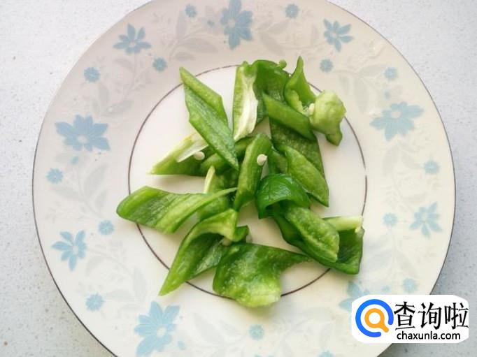青椒用水清洗干净,控干水分,切成菱形片。切好葱,姜,蒜,备用。
