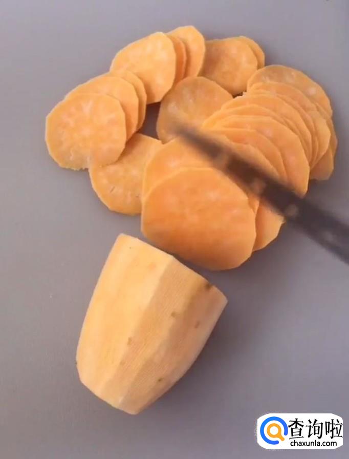 首先,我们把红薯清洗干净,去皮,用到切成薄片