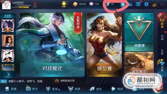 首先打开王者荣耀,点击点券,如图所示