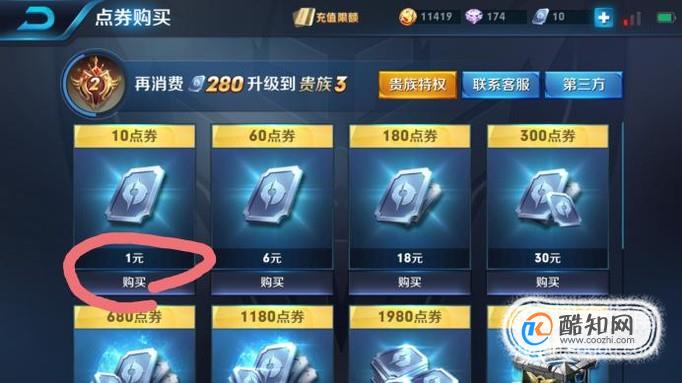 然后任意选择一个金额,点击购买,我以购买一元点券为例