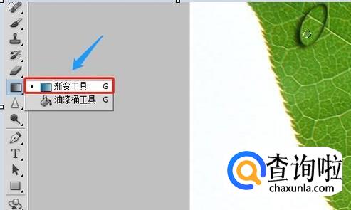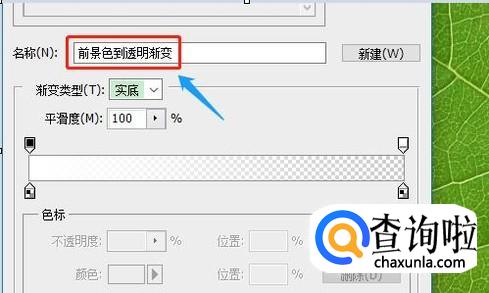 然后在工具左侧找到"渐变"工具,在渐变编辑器里面设置从前景色到透明渐变,前景色设置为白色,如图二所示;