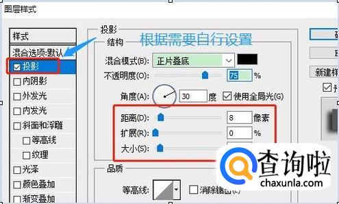 接着依旧在该对话框,这次我们切换至"内阴影"选项,设置方法和刚才的一样,具体数值要根据背景以及自己想要的效果来设置,没有统一的参数供参考;