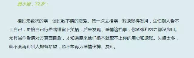 无论是多大年龄的单身男女,都不应盲目结婚,要认真、耐心地寻找属于自己的缘分,和你有共同语言,共同理想,心意相通的Mr.Right,真正做到为爱不将就。