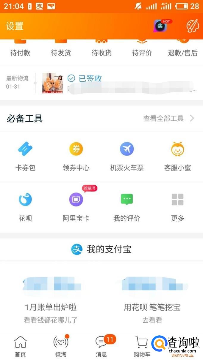 进入主页后,可以看到右下角的我的,点击我的进入我的淘宝主页。