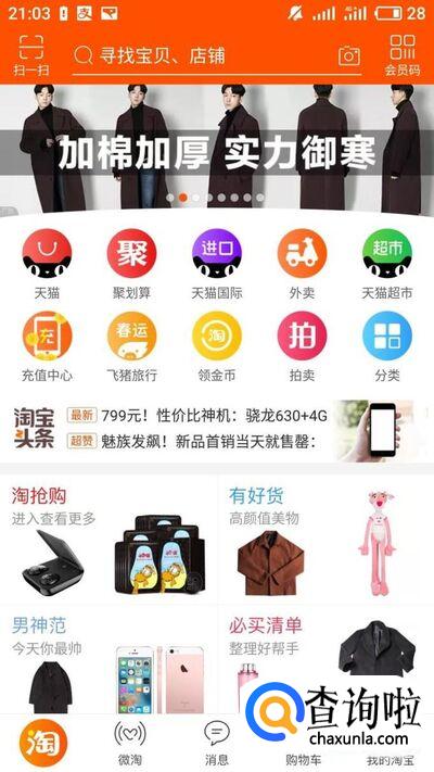 打开手机然后找到手机中的手机淘宝,打开手机淘宝,进入淘宝主页。