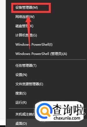 右击开始菜单,选择列表中的“设备管理器”。