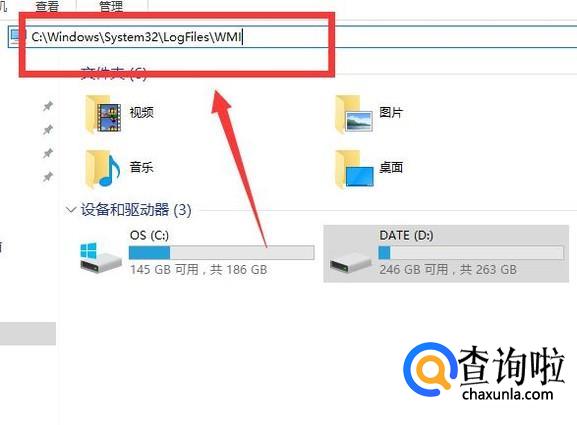 将此路径(C:WindowsSystem32LogFilesWMI)粘贴到文件资源管理器的上方。