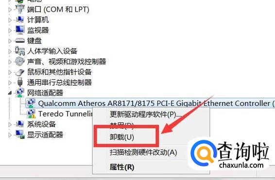 如果还是出现错误提示。在网卡驱动上右击,点击其中的卸载。