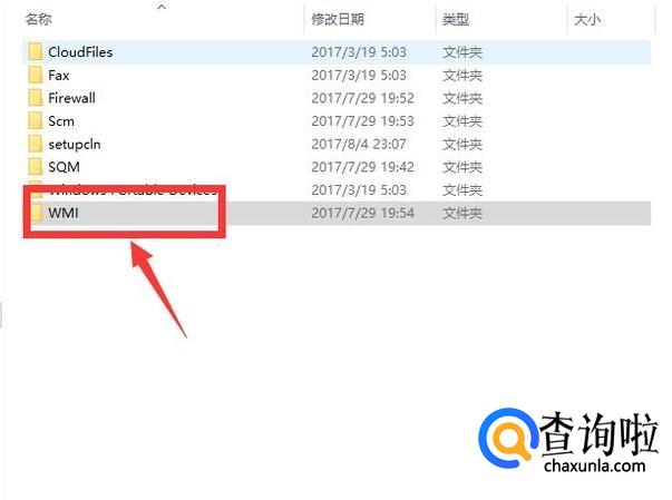 在列表中找到WMI文件夹。