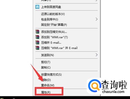 选中WMI文件夹,右击鼠标,点击列表中的属性。