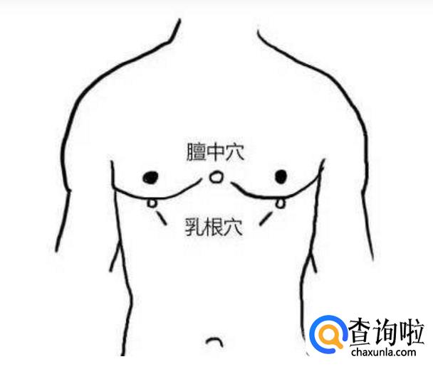 【膻中】-膻中穴位于胸部,当前正中线上,平第4肋间,两乳头连线的中点。膻中穴物质为中庭穴传来的天部水湿之气,至本穴后进一步吸热胀散而变化热燥之气。