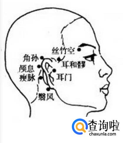 【角孙】-角孙穴下为皮肤、皮下组织、耳上肌、颞筋膜、颞肌。有颞浅动、静脉的分支及耳颞神经的分支。皮肤由下颌神经的耳颞神经分布,皮下筋膜内除上述神经外,还有颞浅动、静脉,无深筋膜。针由皮肤、皮下筋膜穿由颞神经支支配的耳上肌(皮肌),继经颞筋膜入颞肌,直抵骨膜。颞肌属咀嚼肌,由颞深前、后神经支配。