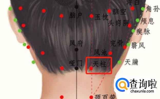 【天柱】-天柱穴位于项部大筋(斜方肌)外缘之后发际凹陷中,约当后发际正中旁开1.3寸。在斜方肌起部,深层为头半棘肌:有枕 动、静脉干;布有枕大神经干。