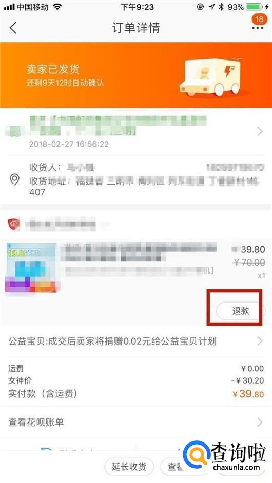 然后选择一个要退款的货物,如下图所示。