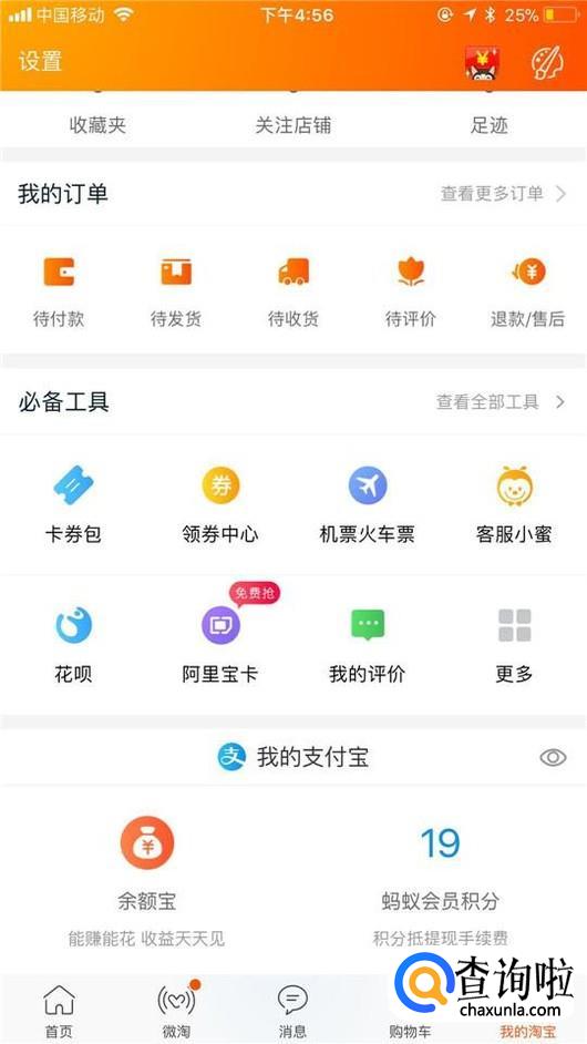然后点击屏幕右下方的我的淘宝,如下图所示。