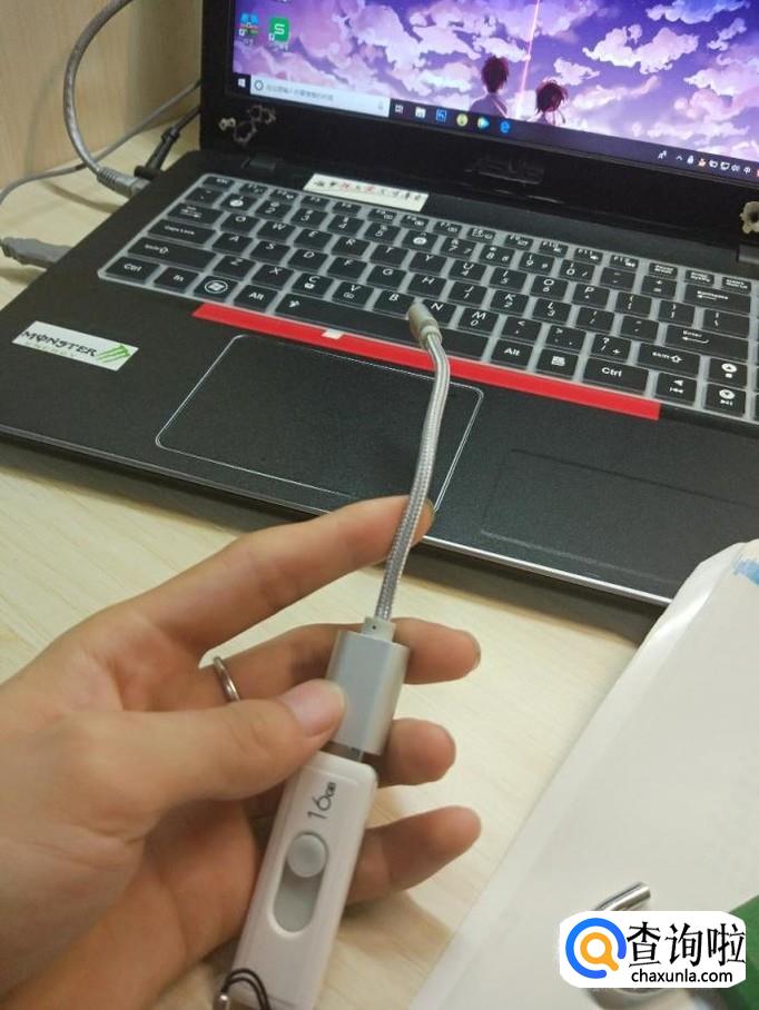 然后把U盘插入到OTG的大的槽里面,然后把小的一头插到手机数据线接口里面。