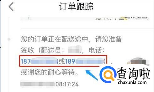 到了最后一个环节,也就是商品已经指派到快递小哥手中了,这里还会详细显示他的手机号码,我们可以事先和他电话沟通确认货物的安置情况,这个比较合适自己不在家无法签收的时候;