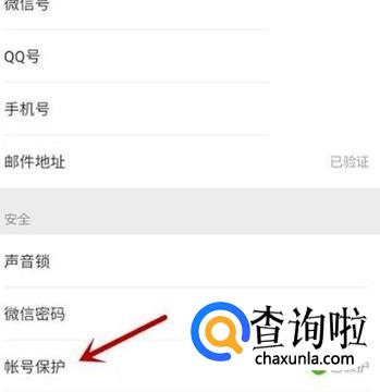 进入之后,点击账号保护,进入下一页面,如图所示。