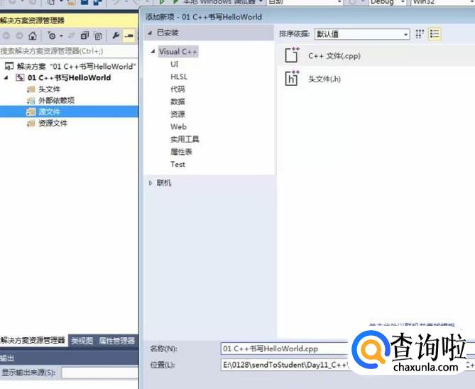 然后我们在C++项目的源文件文件夹下面新建C++文件,如下图所示