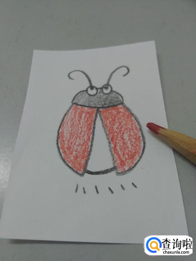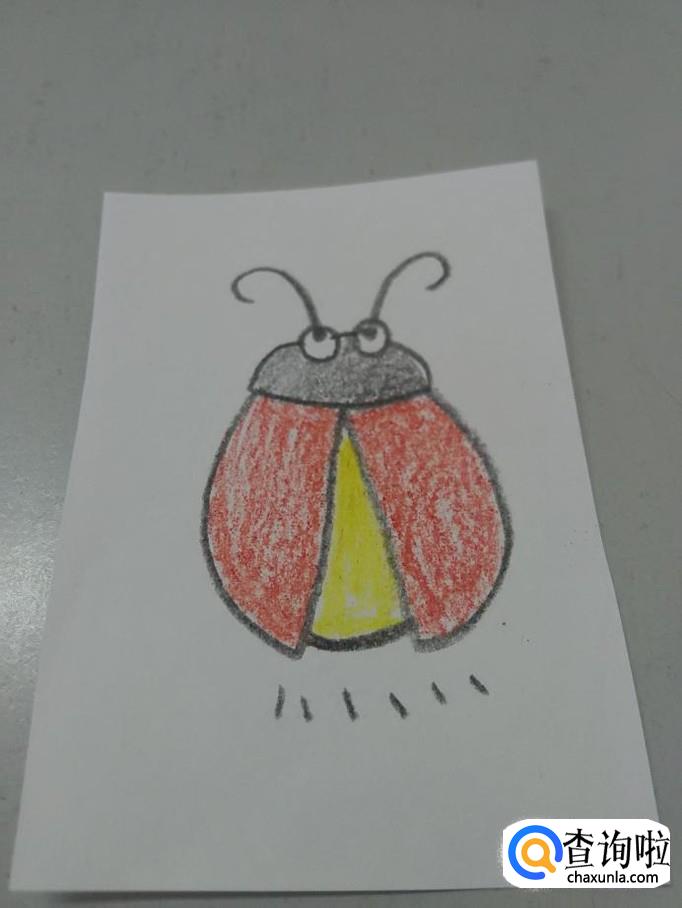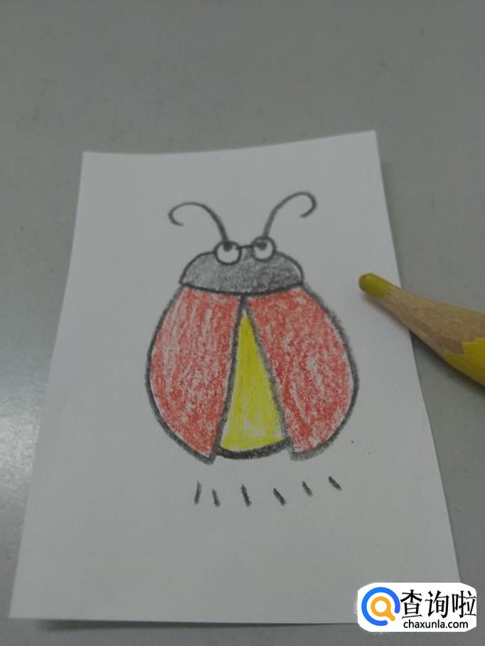 用黄色涂萤火虫的尾部。萤火虫就画完了。