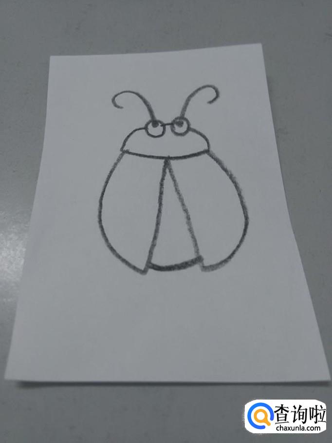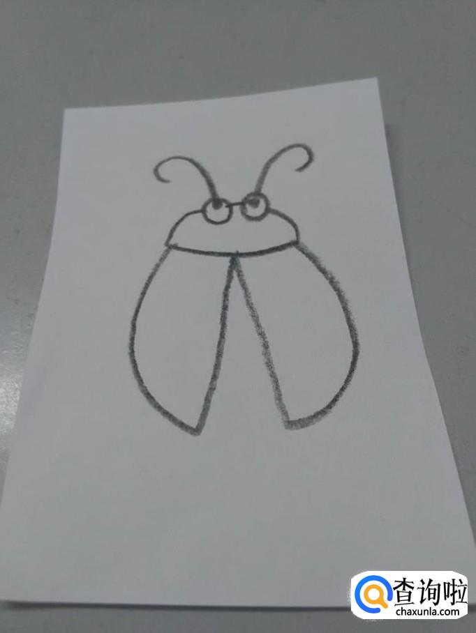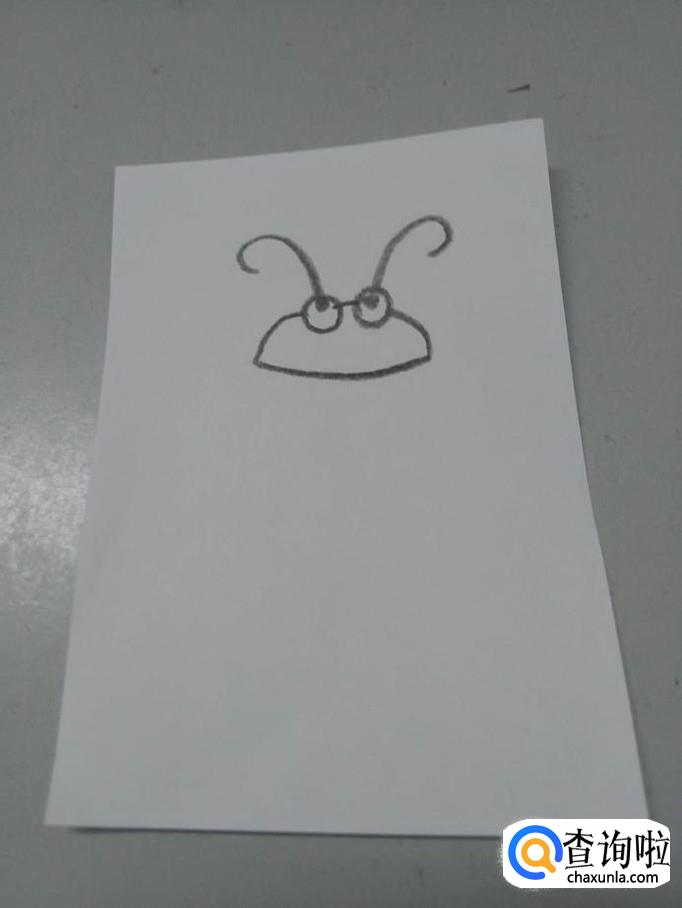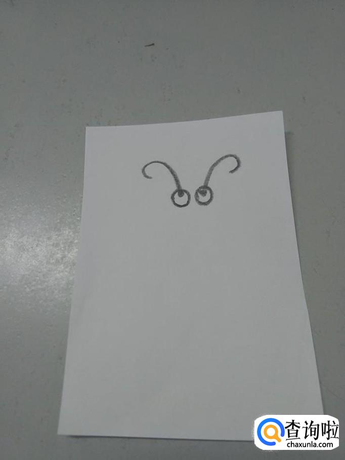 在两根触角的根部画两个圆形,表示眼睛,在眼睛里面画两个黑点,表示眼珠。