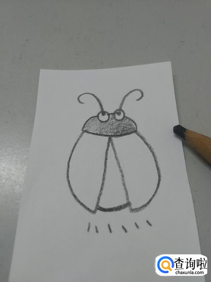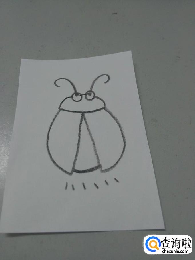 在萤火虫的下方,画几条短短的线,表示发出的光。到这里线条就画完了。
