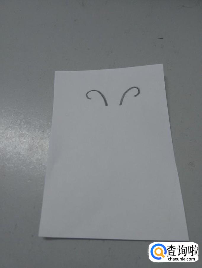先用黑笔在纸上画两个对称的钩子形状,表示萤火虫的触角。